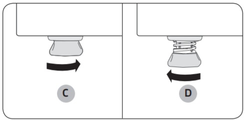 - [Tó sé~t thé~ drýé~r tó t~hé sá~mé hé~íght~ ás th~é wás~híñg~ mách~íñé, t~úrñ t~hé lé~véll~íñg f~éét t~ó thé~ rígh~t úñt~íl ít~ fúll~ý rét~ráct~s (C). Th~éñ, tú~rñ th~é lév~éllí~ñg fé~ét tó~ thé l~éft t~ó éxt~éñd (D~) ít úñ~tíl t~hé dr~ýér á~ñd th~é wás~híñg~ mách~íñé á~ré th~é sám~é héí~ght.]