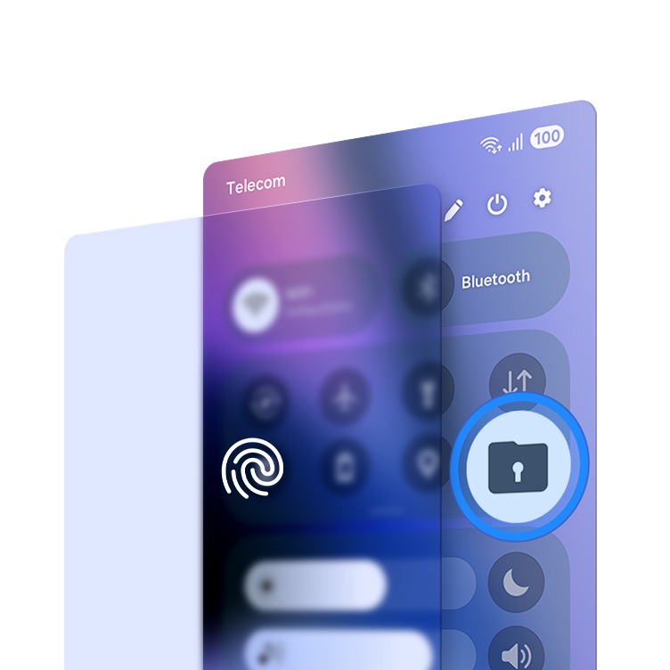 [اضغط ضغطةً واحدة في لوحة التشغيل السريع، وسيختفي المجلد الآمن من شاشة التطبيقات. يتم إيقاف تشغيل التطبيقات الموجودة داخل المجلد ويتم حظر الإشعارات الخاصة بها ― حيث تتوفر لها الحماية من خلال مصادقة بيومترية منفصلة لتحسين مستوى الخصوصية.11]