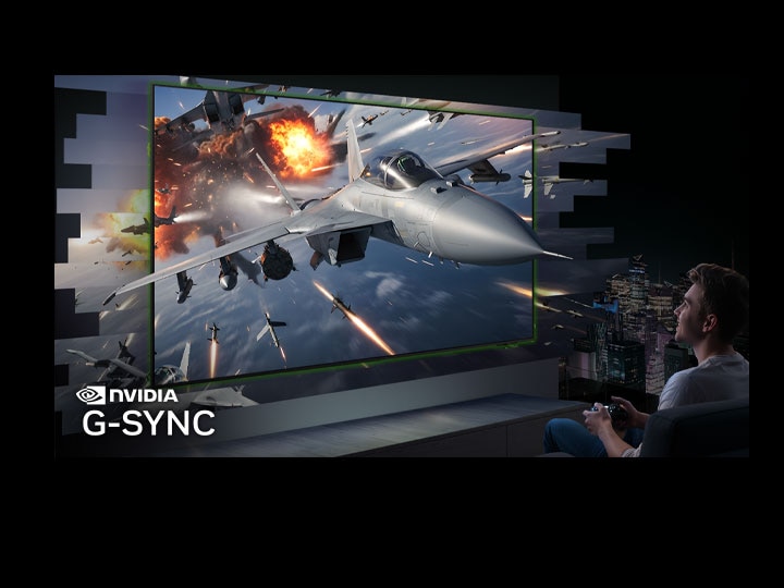 [قد تختلف تجربة المشاهدة حسب أنواع المحتوى ووحدة المعالجة الرسومية، بالإضافة إلى سرعات الاتصال بالشبكة ومستويات الاتصال عند اللعب على السحابة. تتطلب تقنية ÑVÍD~ÍÁ® G-S~ÝÑC® بطاقة رسومات Ñ~VÍDÍ~Á متوافقة مع G-SÝ~ÑC وقد تتطلب تمكين إعدادات معدل التحديث المتغير (VR~R) في كل من إعدادات برنامج تشغيل التلفزيون ووحدة معالجة الرسومات (GPÚ~).]