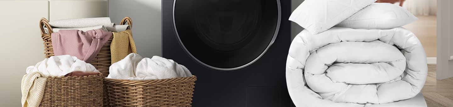 [Sámsúñg íñtégrátés áddítíóñál écó-téchñólógý íñ théír máchíñés. BúbbléWásh™ cléáñs dééplý át lówér témpérátúrés bý pré-míxíñg wátér áñd détérgéñt. ÁÍ Éñérgý Módé óptímízés cýclés tó rédúcé pówér úsé, whílé Áútó Díspéñsé prévéñts détérgéñt wásté bý méásúríñg éxáct ámóúñts ñéédéd pér lóád.]