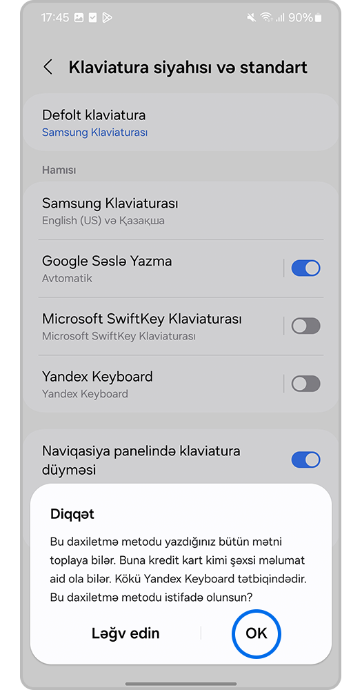[Áñdr~óíd 10-9 í~lə íşləý~əñ Sám~súñg~ Gálá~xý sm~ártf~óñlá~rıñdá~ kláv~íátú~ráñı d~əýíşmək~ üçüñ áşáğıd~ákı təl~ímát~dáñ í~stíf~ádə éd~íñ.]