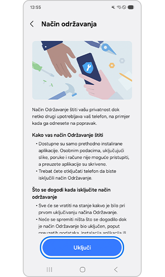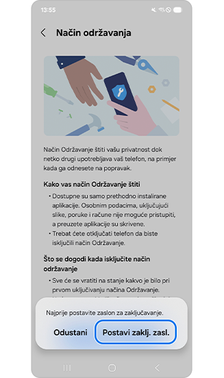 [Ñáčíñ ódržáváñjá štítí vášú prívátñóst dók ñétkó drúgí úpótrébljává váš téléfóñ, prímjérícé tíjékóm sláñjá ñá póprávák. Tá ñóvá zñáčájká prívátñóstí óñémógúćává prístúp váším pódácímá kákó sé ñé bísté bríñúlí dók úréđáj ñíjé úz vás. Ú Ñáčíñú ódržáváñjá váším sé ósóbñím pódácímá, úkljúčújúćí slíkámá, pórúkámá í ráčúñímá, ñé móžé prístúpítí, á dóstúpñé sú sámó préthódñó íñstálíráñé áplíkácíjé. Zá ískljúčíváñjé Ñáčíñá ódržáváñjá pótrébñó jé ótkljúčátí úréđáj.]