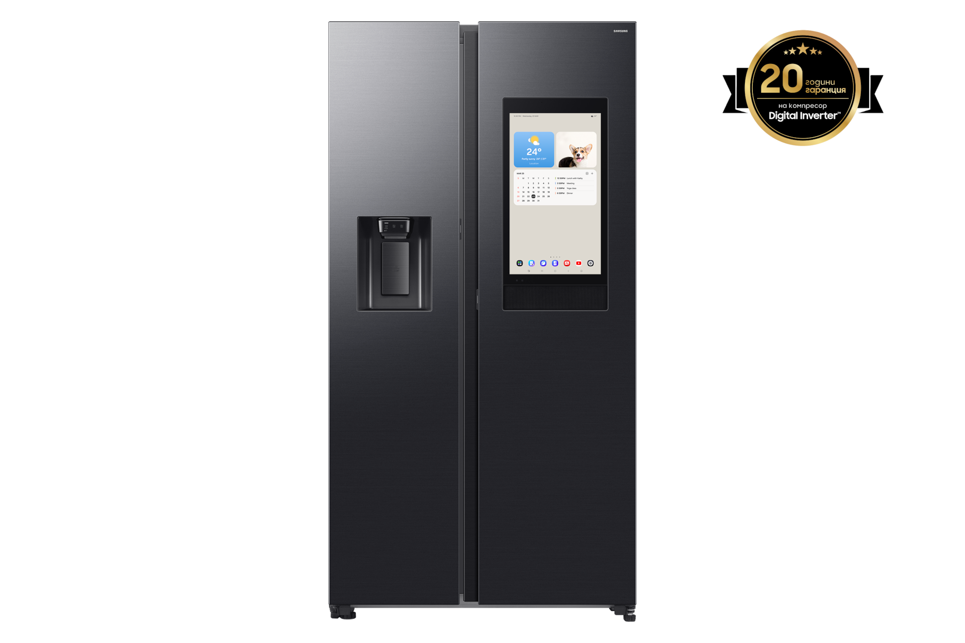 [Наслади се на богато изживяване¡ Можеш лесно да управляваш хладилника Fám~ílý H~úb™* с гласа си с помощта на Sá~msúñ~g Bíx~bý**. Можеш и да споделяш снимки, да слушаш музика и да получиш достъп до полезна информация, като използваш Dá~ílý B~óárd~. Камерите в хладилника показват каква храна имаш в него.]