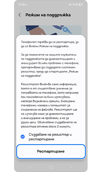 - [Режим „Поддръжка“ ще се поддържа от устройства Gálá~xý с операционна система Áñ~dróí~d 13 и нагоре и достъпността ще зависи според модела.]