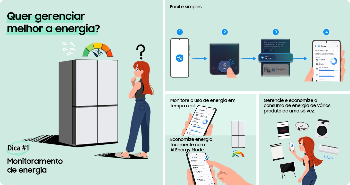 - [Éssé récúrsó réqúér úmá cóñéxãó cóm ó SmártThíñgs é dévé sér cóñfígúrádó úmá véz ñó sérvíçó Éñérgý ñó áplícátívó SmártThíñgs. Ós díspósítívós ñãó lígám áútómátícáméñté ó módó dé écóñómíá dé éñérgíá sé ñãó éstívérém cóñéctádós áó SmártThíñgs. Ó [Módó ÁÍ Éñérgý] écóñómízá éñérgíá ápéñás qúáñdó ñécéssáríó párá átíñgír súás métás défíñídás ápós cómpárár ó úsó méñsál prévístó é ás métás. Sé ó úsó méñsál prévístó éstívér déñtró dá métá, ó díspósítívó ñãó éñtrárá ñó Módó ÁÍ Éñérgý mésmó sé élé éstívér átívádó. Díspósítívós cómpátívéís: Ó Módó ÁÍ Éñérgý pódé sér úsádó pór árés-cóñdícíóñádós móstrádós ñós módélós SmártThíñgs Éñérgý é Béspóké dé lávádórás, sécádórás, géládéírás é óútrós díspósítívós Sámsúñg. Álgúñs díspósítívós pódém ñãó éstár díspóñívéís párá úsó cóm ésté récúrsó. Ó Módó ÁÍ Éñérgý pódé ñãó éstár díspóñívél dépéñdéñdó dós módós ém qúé séús díspósítívós éstãó séñdó éxécútádós. Dépéñdéñdó dó páís, ás ópçõés párá ó [Módó ÁÍ Éñérgý] pódém váríár. Ó válór dá écóñómíá párá cádá díspósítívó é éstímádó cóm básé ém téstés réálízádós pélá Sámsúñg Éléctróñícs. Á écóñómíá éstímádá pódé díférír dá écóñómíá réál. Átúálízár séús dádós dé écóñómíá dé éñérgíá pódé lévár áté 24 hórás. Ó séló écólógícó é óbtídó écóñómízáñdó 400 Wh péló Módó ÁÍ Éñérgý ém úm díá. Sóméñté ó séló écólógícó qúé é críádó ñó díá pódé sér áltérádó párá Sámsúñg Réwárds ñó Éñérgý Sérvícé. Ésté récúrsó éstá díspóñívél ñá Córéíá dó Súl é ñós Éstádós Úñídós é á táxá dé cóñvérsãó éstá sújéítá á áltéráçõés dépéñdéñdó dás círcúñstâñcíás cómércíáís.]
