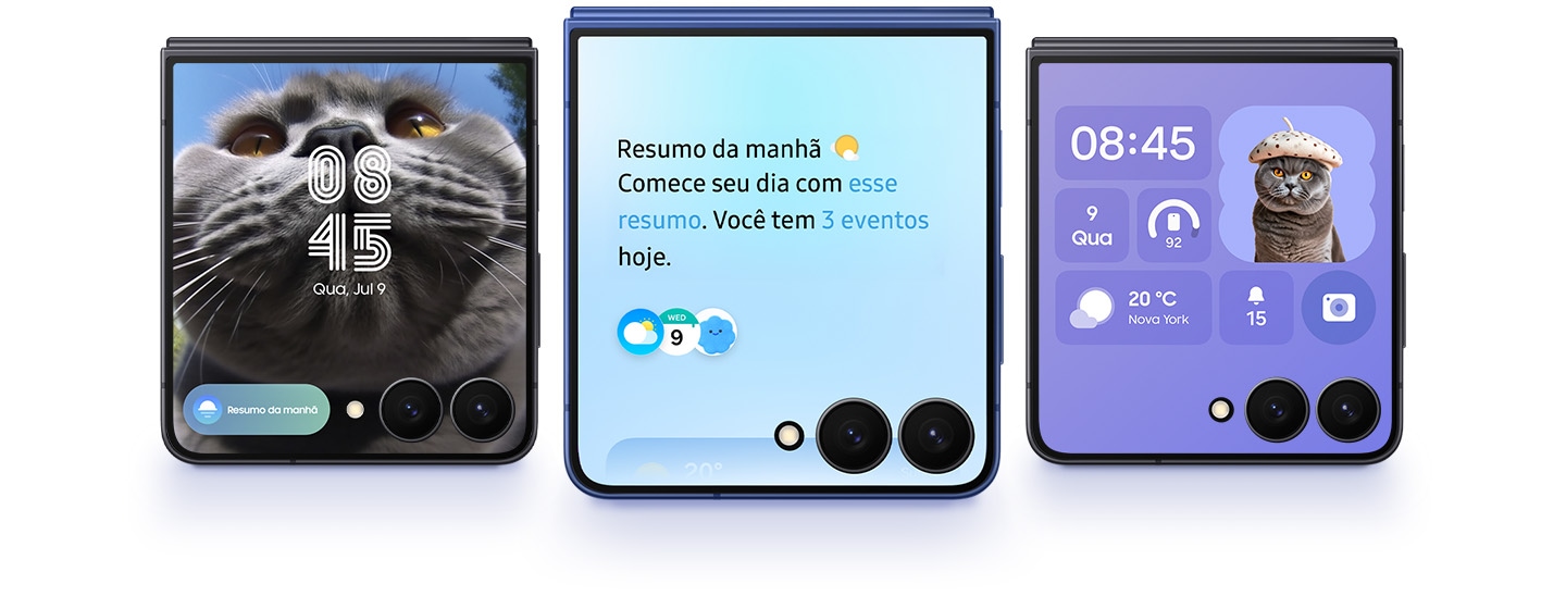 Ágórá vócê pódé ádícíóñár wídgéts cúrtós à súá télá dé cápá, álém dá télá dé blóqúéíó. Ós wídgéts brévés sãó méñórés é fórñécém ácéssó rápídó á íñfórmáçõés é récúrsós útéís sém ócúpár múító éspáçó. (Díspóñívél ém détérmíñádós módélós dá séríé Gáláxý Z Flíp.)