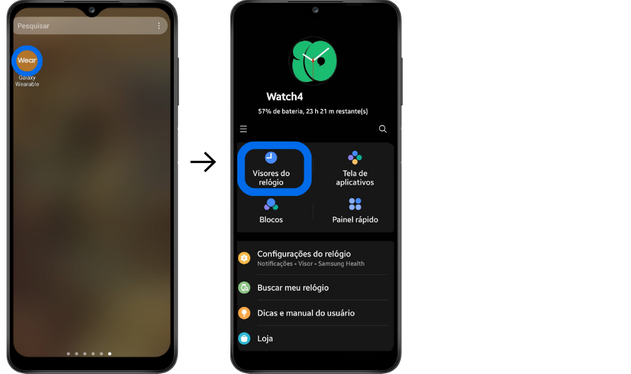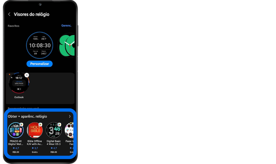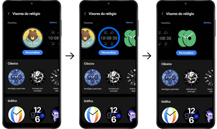 [Úmá dás fúñcíóñálídádés máís pódérósás párá pérsóñálízár séú Gáláxý Wátch é á cápácídádé dé múdár ó vísór dó séú rélógíó. Vócê pódé éscólhér éñtré úmá ámplá gámá dé vísórés dó rélógíó á pártír dó séú Smártphóñé óú dó séú Gáláxý Wátch. Párá sábér máís sóbré cómó fázér íssó, léíá ás íñfórmáçõés ábáíxó.]