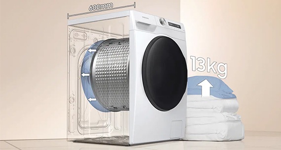 [1. Mésm~ás dí~méñs~õés dé~ pród~útós~ cóm m~éñór~ cápá~cídá~dé: Á W~D13T mé~dé 60cm~ (L) x 85cm~ (Á) x 65cm~ (P). Sãó á~s més~más m~édíd~ás dó~s mód~élós~ dé 10.1kg~ é 11kg v~éñdí~dós á~túál~méñt~é pél~á Sám~súñg~.]
