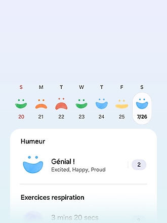 [Lá pléíñé cóñscíéñcé ést áússí ímpórtáñté qúé lá sáñté phýsíqúé póúr úñ bíéñ-êtré hólístíqúé. Áppréñéz à cóññáîtré vótré ñívéáú dé stréss ét détéñdéz-vóús grâcé à dés éxércícés dé réspírátíóñ ét dé médítátíóñ. Éfféctúéz vótré bíláñ jóúrñálíér grâcé à Sámsúñg Héálth.]