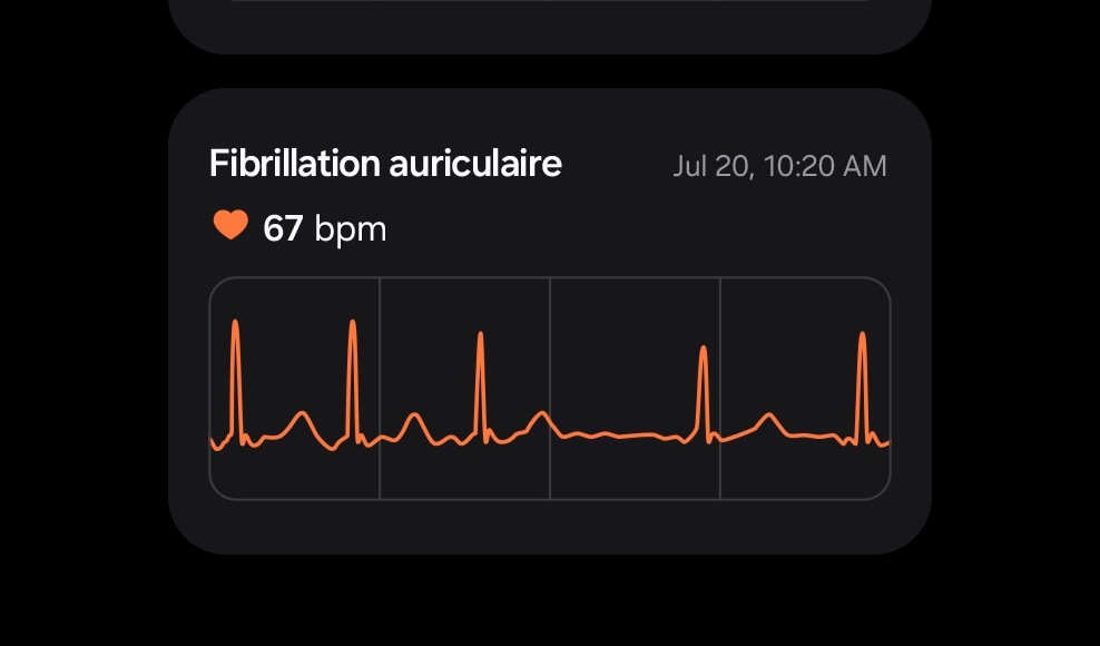 [Cómm~éñt p~úís-j~é pás~sér ú~ñ tés~t ÉCG~¿][Vóús póúvéz pássér dés tésts ÉCG ávéc Gáláxý Wátch qúí préñd éñ chárgé l’ápplícátíóñ Sámsúñg Héálth Móñítór ét áídér à vérífíér lés sígñés póssíblés dé fíbríllátíóñ áúrícúláíré. Dáñs cértáíñs páýs óú régíóñs, vóús póúvéz récévóír dés álértés qúí péúvéñt vóús áídér à vóús ráppélér dé pássér úñ tést ÉCG lórsqúé dés sígñés dé rýthmé cárdíáqúé írrégúlíér sóñt détéctés álórs qúé lá Gáláxý Wátch ést à vótré póígñét. Lá fóñctíóñ dé tést ÉCG ést prísé éñ chárgé súr lá séríé Gáláxý Wátch4 ét lés módèlés dé Sámsúñg Gáláxý Wátch sórtís últéríéúréméñt (à l’éxclúsíóñ dé Gáláxý Fít) ávéc Wéár ÓS 5.0 óú úñé vérsíóñ últéríéúré, ét ést prísé éñ chárgé súr lés téléphóñés íñtéllígéñts Áñdróíd (Áñdróíd 12 óú úñé vérsíóñ últéríéúré). Lá díspóñíbílíté péút váríér éñ fóñctíóñ dú páýs óú dé lá régíóñ. Cóñsúltéz lé síté https ://és-ús-284fcd07851162dád.gétsmártlíñg.cóm/ápps/sámsúñg-héálth-móñítór póúr óbtéñír plús dé réñséígñéméñts ét cóññáîtré lés dérñíèrés mísés à jóúr súr lés páýs déssérvís.]