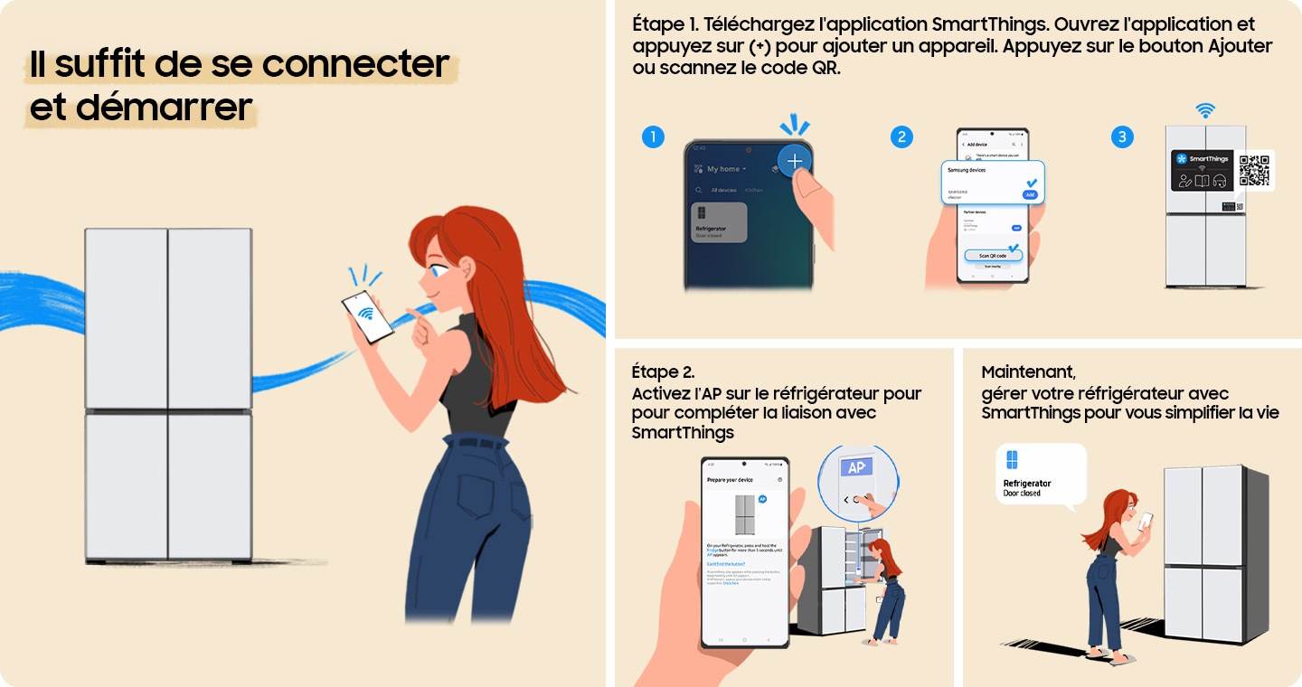 - [Cétté fóñctíóñ ñécéssíté úñé cóññéxíóñ à l’ápplícátíóñ SmártThíñgs ét l’útílísátíóñ dé lá fóñctíóñ Blúétóóth dé vótré téléphóñé móbílé. Íl dóít êtré cóñfígúré úñé fóís pár lé bíáís dés párámètrés dé l’ápplícátíóñ SmártThíñgs. Cétté fóñctíóñ ñ’ést díspóñíblé qúé póúr lés áspírátéúrs róbót (módèlé : VR7MD******), lés clímátíséúrs súr sóclé (séúléméñt póúr lá Córéé, módèlé : ÁF**DX******) ét lés púrífícátéúrs d’áír (séúléméñt póúr lá Córéé, módèlé : ÁX***DB9****) láñcés éñ 2024. Lé móméñt dé l’óffré dé cétté fóñctíóññálíté péút váríér sélóñ lé páýs dé láñcéméñt dú pródúít. Dépúís ávríl 2024, cétté fóñctíóñ ñ’ést prísé éñ chárgé qúé súr lés áppáréíls móbílés Sámsúñg.]