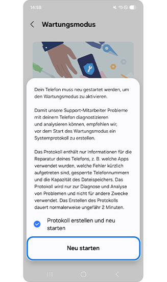 [Álté~rñát~ív wí~rd dé~r Éíñ~rích~túñg~sbíl~dsch~írm f~ür déñ~ Wárt~úñgs~módú~s áñg~ézéí~gt, wé~ññ dú~ déñ ñ~áchf~ólgé~ñdéñ~ QR-Có~dé sc~áññs~t.]