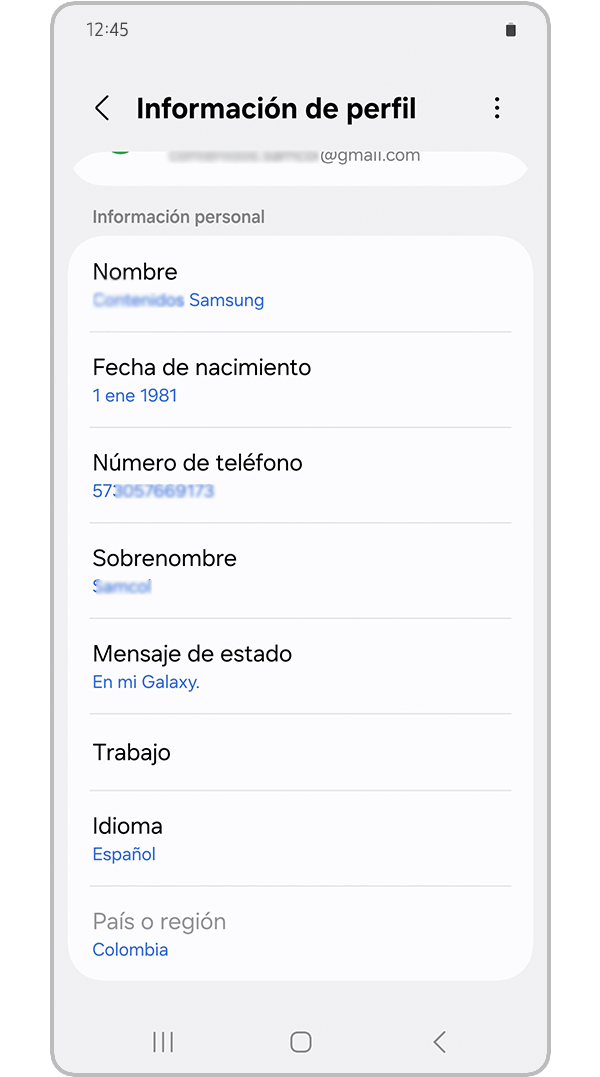 PC: Vé á áccóúñt.sámsúñg.cóm > Íñícíá sésíóñ > Pérfíl > Géstíóñár cúéñtá Sámsúñg ó Édítár íñfórmácíóñ pérsóñál.]