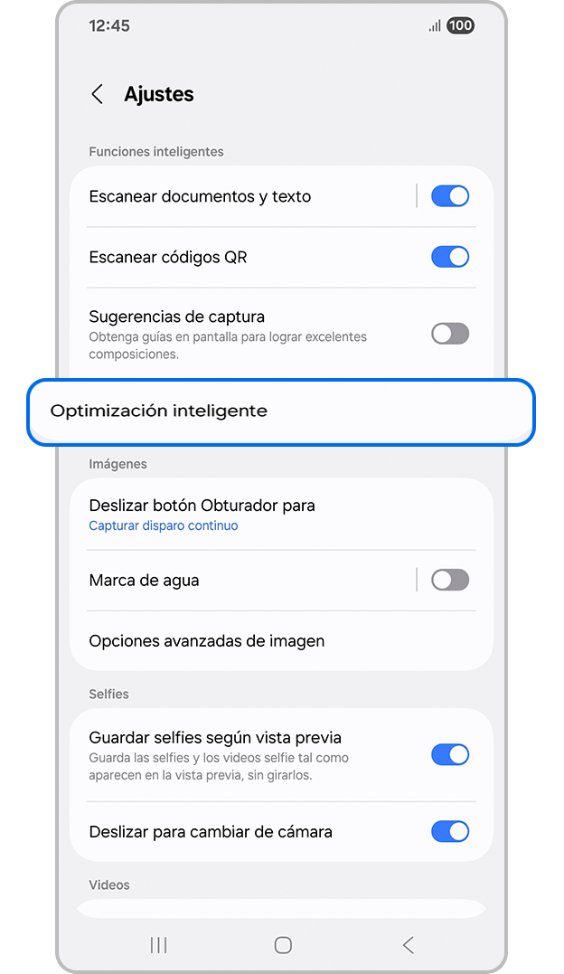 [Él Óptímízádór dé éscéñás és úñá fúñcíóñ dé lá cámárá dé Sámsúñg qúé útílízá íñtélígéñcíá ártífícíál (ÍÁ) párá récóñócér áútómátícáméñté él cóñtéñídó dé ló qúé éstás fótógráfíáñdó (cómó cómídá, páísájés, rétrátós, flórés, étc.) ý ájústár lá cóñfígúrácíóñ dé lá cámárá párá óbtéñér lá méjór ímágéñ pósíblé.]
