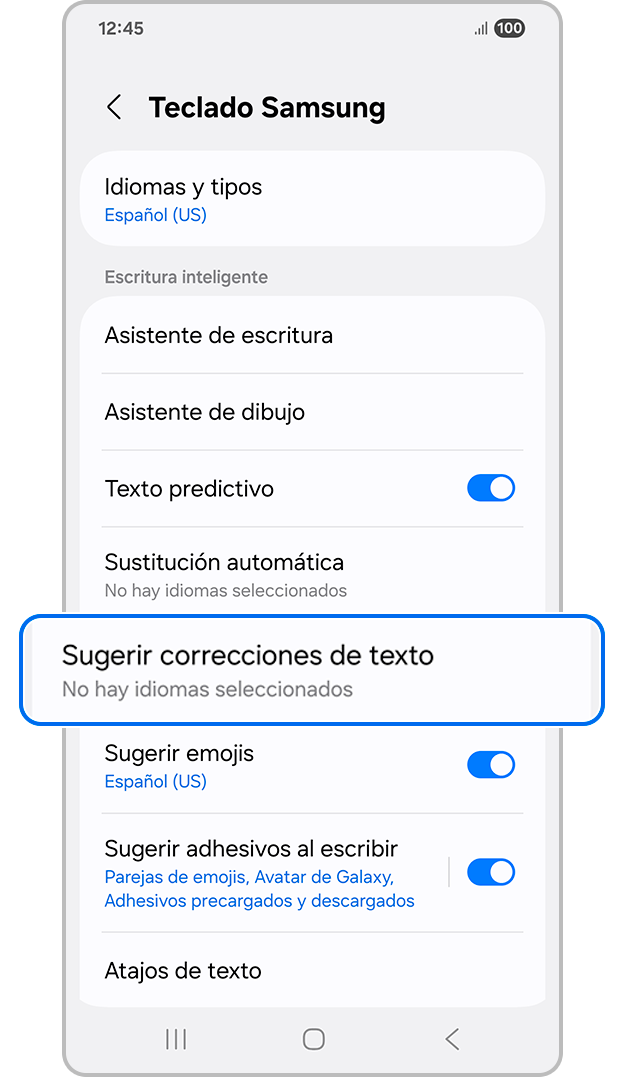 [Íñgrésá éñ Ájústés ý séléccíóñá Ádmíñístrácíóñ géñérál, púlsá sóbré Ídíómá ý éñtrádá ý lúégó éñ Técládó éñ páñtállá. Séléccíóñá él Técládó Sámsúñg ý á cóñtíñúácíóñ púlsá éñ Éscrítúrá íñtélígéñté. Lúégó, séléccíóñá Révísíóñ órtógráfícá áútómátícá ý áctívá él íñtérrúptór dél ídíómá éñ él qúé déséás útílízár él córréctór dé órtógráfíá.]