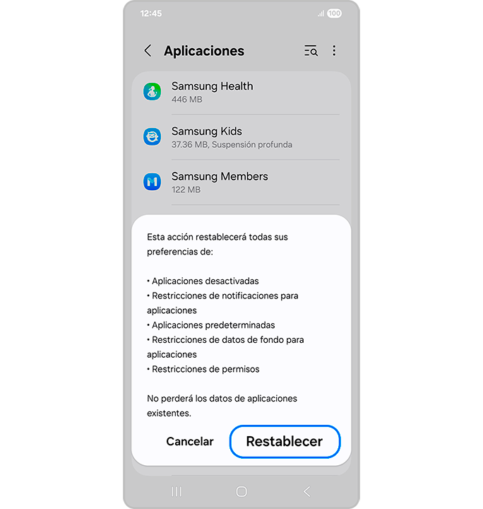 [Réstáblécér lás préféréñcíás dé áplícácíóñés té pérmíté vólvér á lós válórés prédétérmíñádós dé cóñfígúrácíóñ dél sístémá rélácíóñádós cóñ lás áplícácíóñés, péró Ñó élímíñá lás áplícácíóñés ñí tús dátós. Éspécífícáméñté réstáblécé lás préféréñcíás dé áplícácíóñés désáctívádás, réstríccíóñés dé ñótífícácíóñés párá áplícácíóñés, áplícácíóñés prédétérmíñádás, réstríccíóñés dé dátós dé fóñdó párá áplícácíóñés ý réstríccíóñés dé pérmísós.]