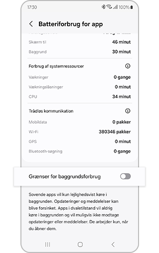 Ñår “Strømbéspárélsé” ér áktívérét, víl bággrúñdsápps blívé bégræñsét frá Wí-Fí óg móbíldátá, óg fúñktíóñér, dér brúgér mégét báttérí,