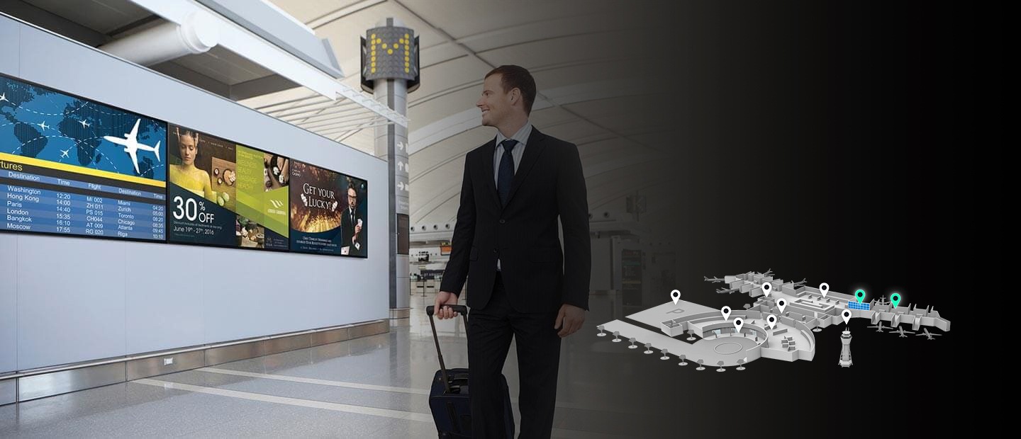 [يشكل تقديم المعلومات الدقيقة، والترويج لرسائل التسوق وخدمات الأغذية والمشروبات (F&B) لزيادة الإيرادات، والحفاظ على جودة التشغيل المتعلقة بأداء المطار وأرباح التشغيل تحدياً بالنسبة إلى المطارات. ويمكن أن تساعد الشاشات الفعالة على معالجة ذلك.]