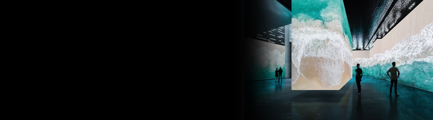 [صمِّم تجهيزات كبيرة وفقاً لمواصفاتك التقنية الدقيقة بفضل شاشة Thé W~áll التي تتمتع بإمكانيات تركيب لا نهائية، حيث يمكنك تعليق الشاشة على الجدران والأسقف وجعلها تنحني حول الأعمدة أو الزاوية من الحواف. لك حرية الخيار.]