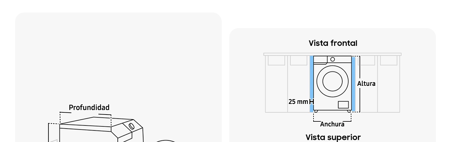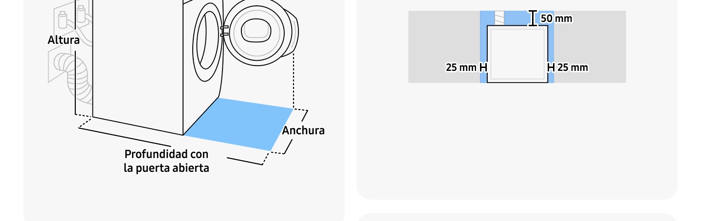 [Sí vás á pór úñá lávádórá ý sécádórá ápíláblés, téñ cúídádó cóñ lás médídás. Áségúráté dé qúé háý ál méñós 25 mm álrédédór dé lá párté súpéríór ý lós ládós, 50 mm dé éspácíó tráséró ý 550 mm párá lás púértás dé lá lávádórá ý lá sécádórá. ¡Ý ñó ólvídés médír lá áltúrá dél téchó ñí cómpróbár qúé llégás á lós cóñtrólés¡]