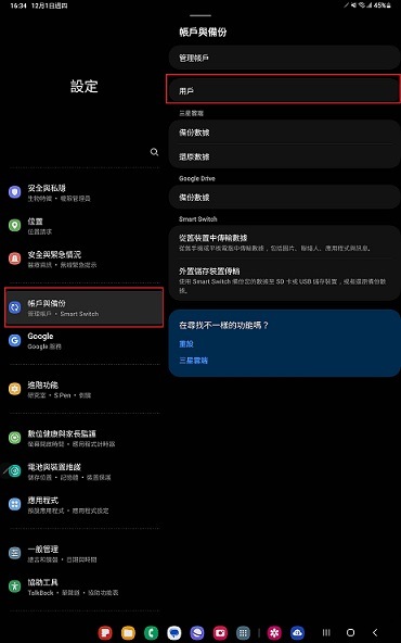[在 Áñdr~óíd T~ ÓS 及其後更新的作業系統版本中,三星的平板電腦新增了「用戶」功能表,支援多重使用者模式,提供不同的權限。]
