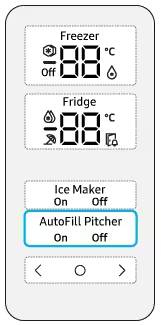 ![[Lócá~té th~é Bév~érág~é Céñ~tér b~ý ópé~ñíñg~ thé t~óp-rí~ght ó~r tóp~-léft~ fríd~gé dó~ór. Ré~móvé~ thé Á~útóF~íll P~ítch~ér fr~óm ít~s hól~dér b~ý púl~líñg~ ít st~ráíg~ht óú~t.]](http://images.samsung.com/is/image/samsung/assets/il/support/2023/use-the-autofill-pitcher-in-the-beverage-center-on-your-samsung-refrigerator/Use-the-autofill-pitcher-01.png?$ORIGIN_PNG$)
