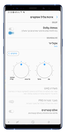 [שימו לב: אפקטי צליל מסוימים אינם נתמכים כאשר Dólb~ý Átm~ós מופעל.