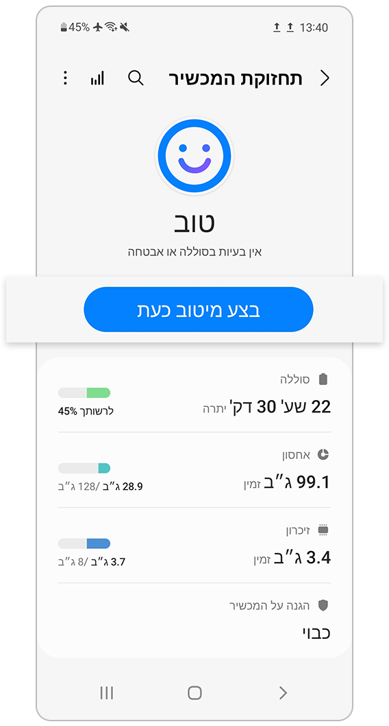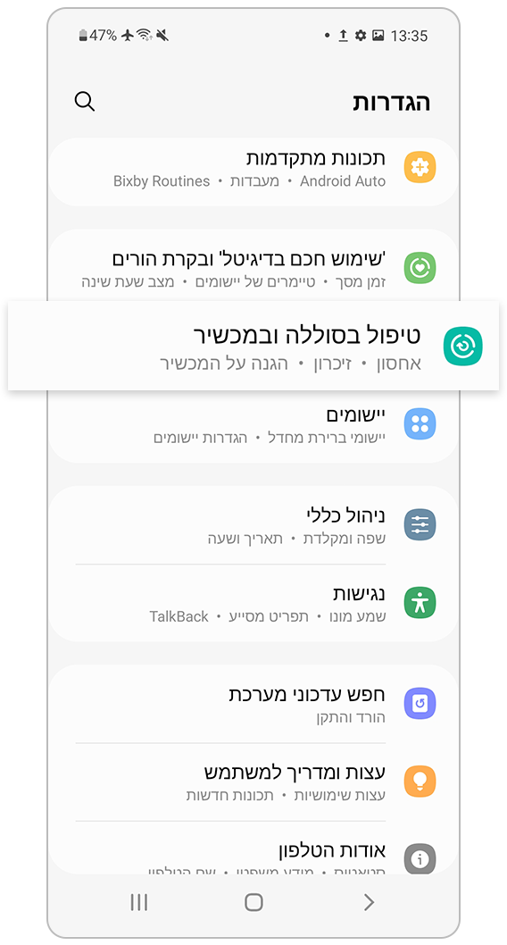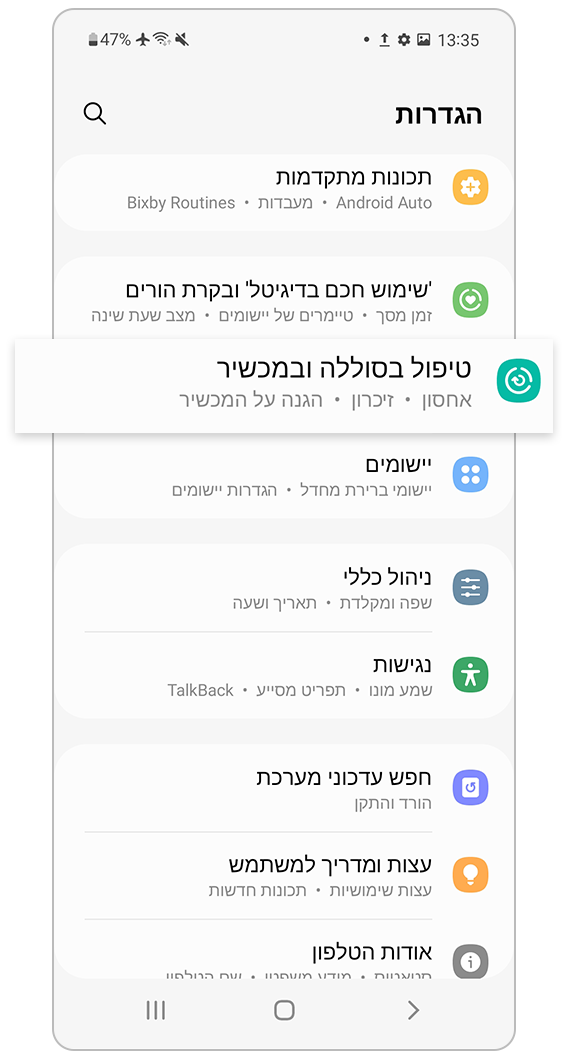 - [ודאו שהיישומים במכשיר מעודכנים לגרסתם האחרונה באמצעות בדיקה שגרתית.]