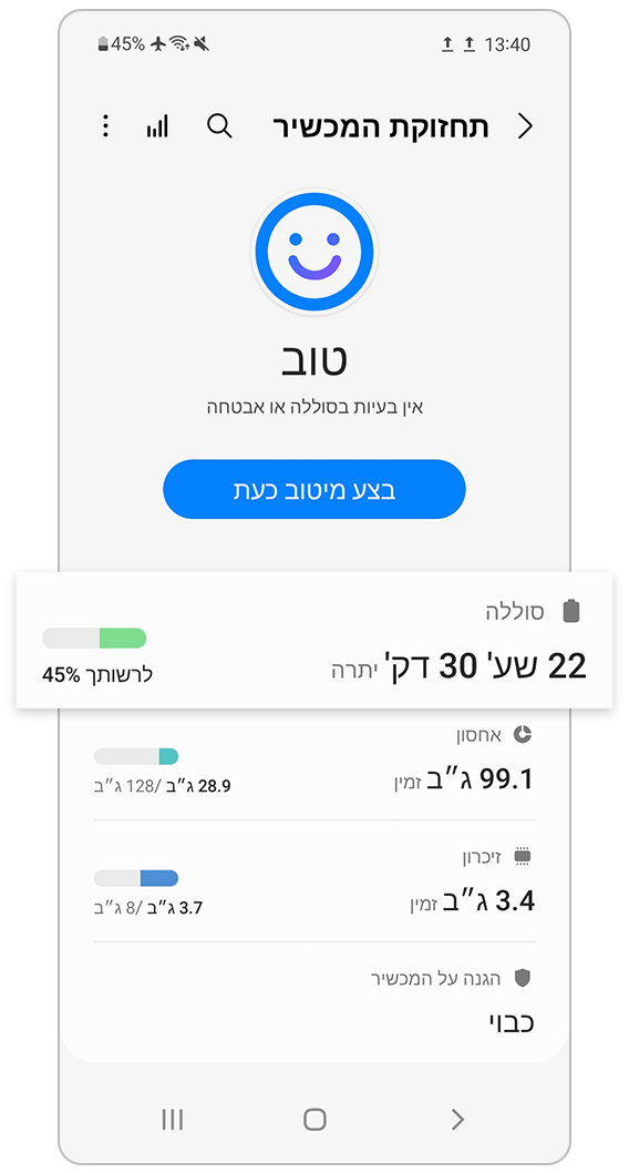 [מטבו את ביצועי המכשיר כדי למזער התחממות שנגרמת על-ידי יישומים הדורשים הפעלת מעבד אינטנסיבית ומרוקנים את הסוללה.]