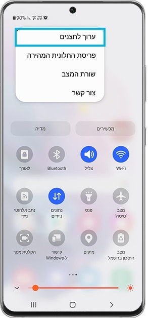 [אם אינכם מצליחים למצוא את הסמל של כיוון המסך, ייתכן שבטעות מחקתם אותו מתפריט החלונית המהירה. עקבו אחרי השלבים הבאים כדי להוסיף את הסמל של כיוון המסך לחלונית המהירה.]