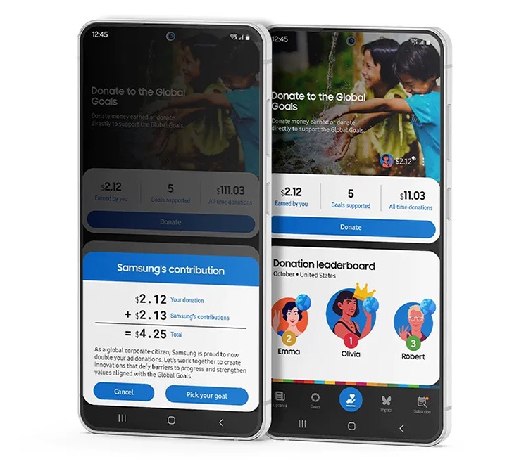 [يضع تطبيق سامسونج Glób~ál Gó~áls عائدات إعلاناته بين يديك. كل إعلان تشاهده داخل التطبيق يتم التبرع بعائداته.]