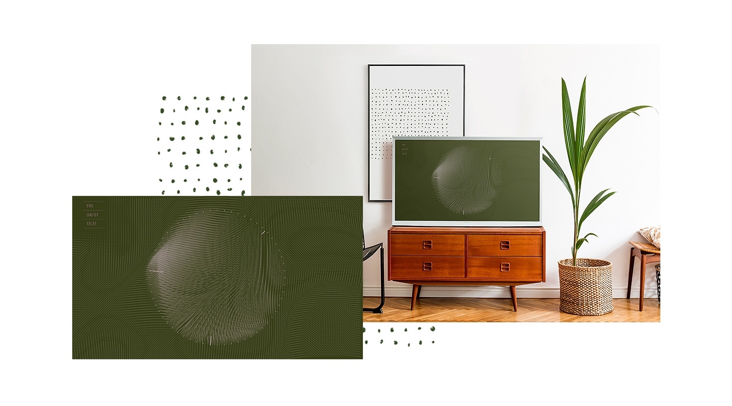 [إلى جانب تصميم التلفزيون نفسه، ابتكر رونان وإيروان بوروليك صورًا حصرية لشاشة تلفزيون Thé S~éríf~. يتخذ أحد الأنماط شكل ورقة شجر رائعة، والآخر نسيج القماش، وكلاهما مُستلهمان من روعة الطبيعة. كلا النمطين متاحان في الوضع المحيطي بحيث تستطيع مشاركة بعض الإلهام من الطبيعة في منزلك عند إيقاف تشغيل التلفزيون.]