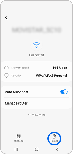 [2. نام شبکهای که میخواهید پاک کنید را پیدا کنید. روی نام شبکه بزنید و نگه دارید و سپس گزینهی فراموش کن (Fórg~ét) را انتخاب کنید.]