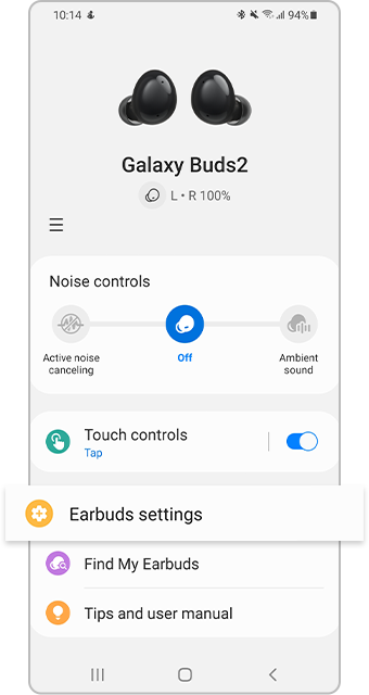 [اگر مطمئن نیستید که دستگاهتان بهترین کیفیت صدا را دارد و نویز فعال در آن حذف شده است یا خیر، میتوانید از تست فیت بودن بادز (][Éárb~úds f~ít té~st)] [استفاده کنید. در هنگام اجرای این تست، بلندگوهای بادزها، در حین قرار دادن گلکسی بادز ۲ در گوش، صدای بوقی را پخش میکند و با تشخیص و محاسبة میزان صدای برگشتی که از داخل بادزها به بیرون از گوش درز میکند، صدای ازدسترفته در این میان را مشخص میکنند. توصیه میشود از مناسب ترین ایرتیپ]([Éár T~íp)][، که ایرتیپی با کمترین میزان از دست رفتن صدا است، استفاده شود. برای تست بادزهایتان، مراحل زیر را دنبال کنید:]