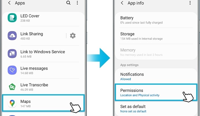 [در تلفنهای هوشمند سامسونگ مجهز به اندروید ۱۰، اگر سیگنال جیپیاس مشکل داشته باشد، تنظیمات مکان غیرفعال باشد یا اگر از روش بهترین مکان یابی استفاده نکنید، ممکن است اطلاعات مکان درست نمایش داده نشود.]