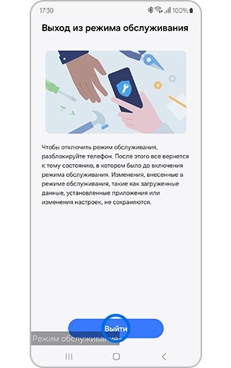 - [Вы также можете выйти из режима обслуживания, перейдя в Настройки > Обслуживание устройства > Режим обслуживания.]
