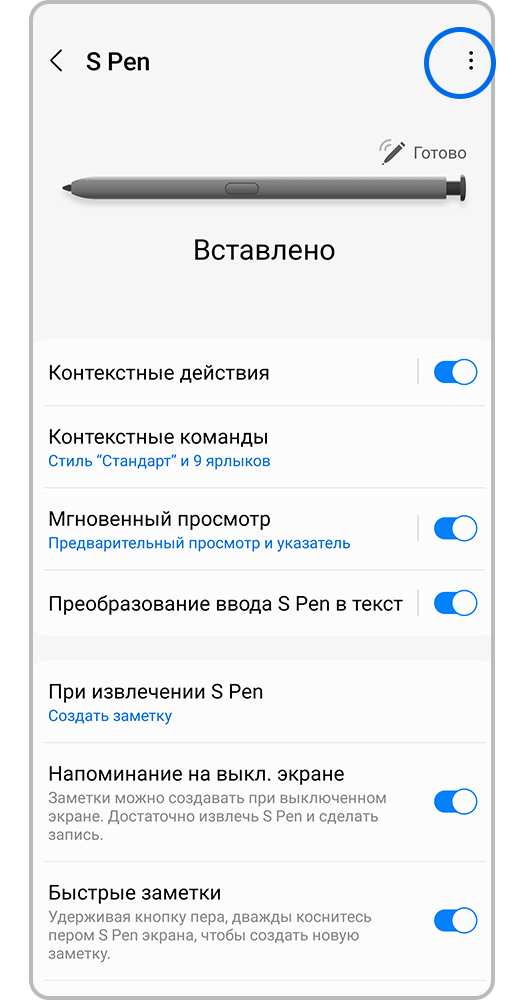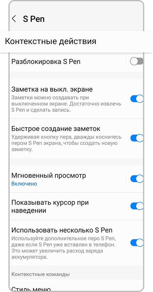 [Чтобы вызывать меню на смартфоне с помощью кнопки на пере S Péñ~ Fóld~ Édít~íóñ, необходимо включить контекстные действия.]