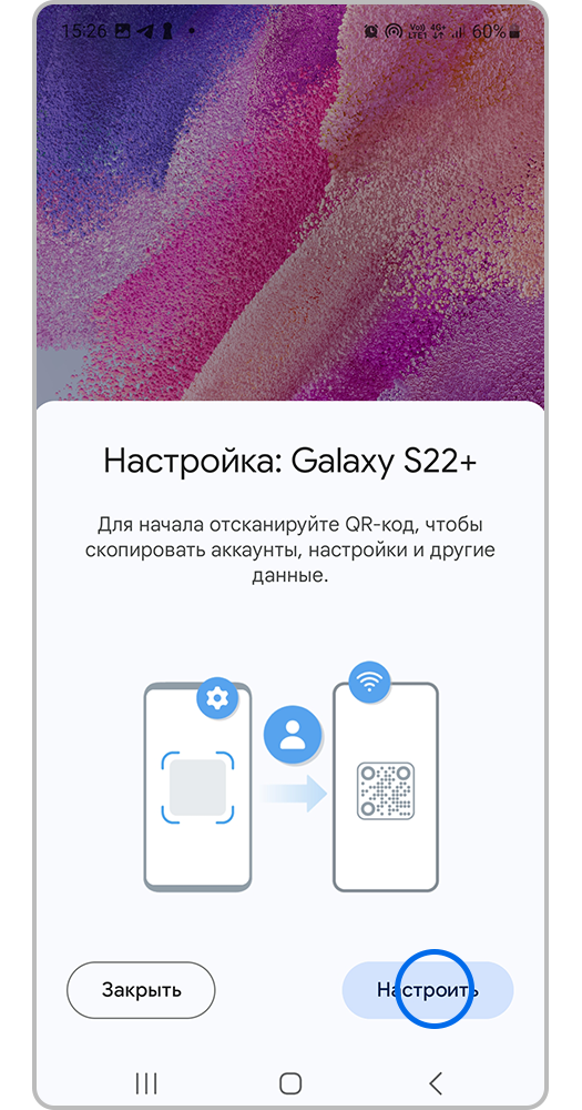 [Если при сканировании QR-кода вы перешли на эту статью, на старом устройстве откройте приложение Sm~árt S~wítc~h и следуйте инструкции из статьи «Резервное копирование и передача данных с помощью Smá~rt Sw~ítch~ на Sáms~úñg G~áláx~ý», чтобы перенести данные на новый Sám~súñg~ Gálá~xý.]