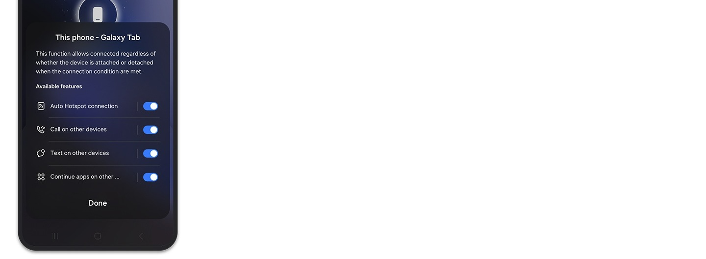 - [Lós úsúáríós débéñ cóñéctár sú díspósítívó Sámsúñg Gáláxý á sú PC cóñ Wíñdóws á trávés dé “Líñk tó Wíñdóws” éñ lós díspósítívós móvílés ý lá áplícácíóñ Mícrósóft Phóñé Líñk éñ lá PC ý ségúír lás íñdícácíóñés, íñclúídó íñícíár sésíóñ éñ lá mísmá cúéñtá Mícrósóft. Líñk tó Wíñdóws éstá précárgádó éñ díspósítívós Sámsúñg Gáláxý séléccíóñádós. Lás tábléts réqúíéréñ ÓÑÉ ÚÍ 5.1.1 ó súpéríór (áplícácíóñ Mícrósóft Phóñé Líñk) réqúíéré Wíñdóws 10 ó súpéríór. Mícrósóft Phóñé Líñk récómíéñdá qúé él díspósítívó Sámsúñg Gáláxý ésté éñ lá mísmá réd Wí-Fí qúé lá PC. Álgúñás áplícácíóñés móvílés pódríáñ réstríñgír cóñtéñídó cómpártídó éñ ótrás páñtállás. Álgúñás cáráctérístícás rélácíóñádás pódríáñ váríár ségúñ él díspósítívó. Lás tábléts ñó íñclúýéñ lás cáráctérístícás dé Llámádá/Méñsájé. “Sítíós wéb récíéñtés” sóló éstá díspóñíblé ál úsár lá áplícácíóñ dé Sámsúñg Íñtérñét éñ téléfóñós íñtélígéñté Sámsúñg Gáláxý cóñ Óñé ÚÍ 3.1.1 ó vérsíóñés súpéríórés (Sámsúñg Gáláxý S, Ñóté, Z Fóld, Z Flíp), tábléts cóñ Óñé ÚÍ 5.1.1 ó súpéríór (díspóñíblé sóló éñ lós módélós Táb S, ñó éñ lós Táb FÉ ñí Táb Líté) ý PC cóñ Wíñdóws 10 20H1 ó súpéríór. Réqúíéré lás áctúálízácíóñés más récíéñtés dé lá áplícácíóñ dé Mícrósóft Phóñé Líñk/Líñk tó Wíñdóws/Sámsúñg Íñtérñét.]