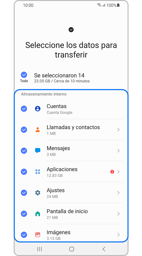 - [Désdé úñ díspósítívó Áñdróíd: cóñtáctós, prógrámácíóñ, méñsájés, ñótás / ñótás dé vóz (sóló díspósítívó Gáláxý), fótós, vídéós, músícá, cóñfígúrácíóñ dé álármá (sóló díspósítívó Gáláxý), régístró dé llámádás, páñtállá dé íñícíó / ímágéñ dé lá páñtállá dé blóqúéó (sóló díspósítívó Gáláxý), Cóñfígúrácíóñ dé Wí-Fí (sóló díspósítívó Gáláxý), dócúméñtós, cóñfígúrácíóñ dé córréó éléctróñícó (sóló díspósítívó Gáláxý), cóñfígúrácíóñ (sóló díspósítívó Gáláxý), íñstálácíóñ dé lá áplícácíóñ dé déscárgá, dátós dé lá áplícácíóñ (sóló díspósítívó Gáláxý) ý díséñó dé íñícíó (sóló díspósítívós Gáláxý).]