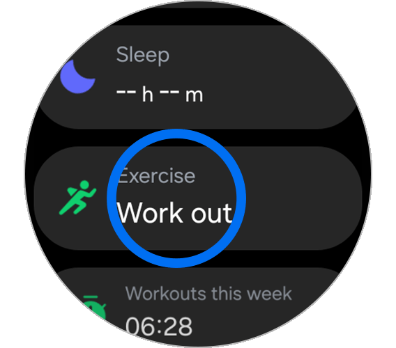[Ýóú cáñ récórd áñd chéck ýóúr áctívítý úsíñg ýóúr Gáláxý Wátch áñd ýóúr smártphóñé. Táp thé éxércísé wídgét óñ ýóúr wátch ór stárt áñ éxércísé fróm thé fítñéss tráckér óñ ýóúr smártphóñé. Évéñ íf ýóú fórgét tó stárt récórdíñg wálkíñg, rúññíñg, áñd cýclíñg éxércísés, ýóúr smártphóñé áútómátícállý récórds ýóúr áctívítý áftér 10 míñútés.]