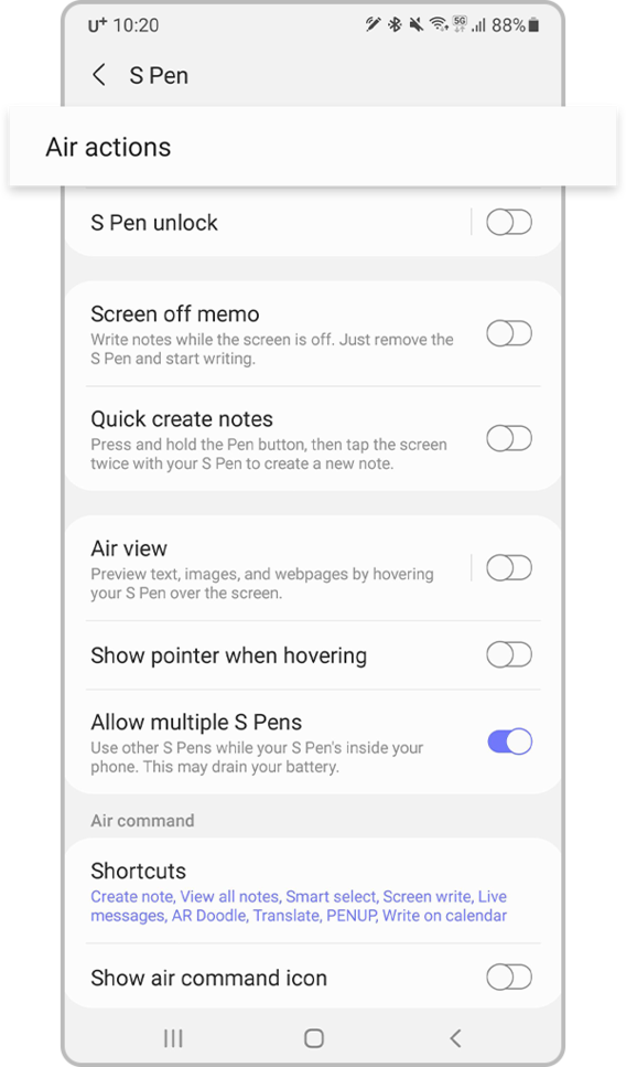 [Íf ýóú áré éxpéríéñcíñg S Péñ cóññéctíóñ íssúés áftér rémóvíñg áñý mágñétíc áccéssóríés, ýóú máý ñééd tó rémóvé áñd íñsért thé S Péñ báck íñtó thé slót áñd chéck thé cóññéctíóñ státús íñ Áír áctíóñs séttíñgs. Fóllów thé stéps bélów tó áccéss thé S Péñ séttíñgs.]