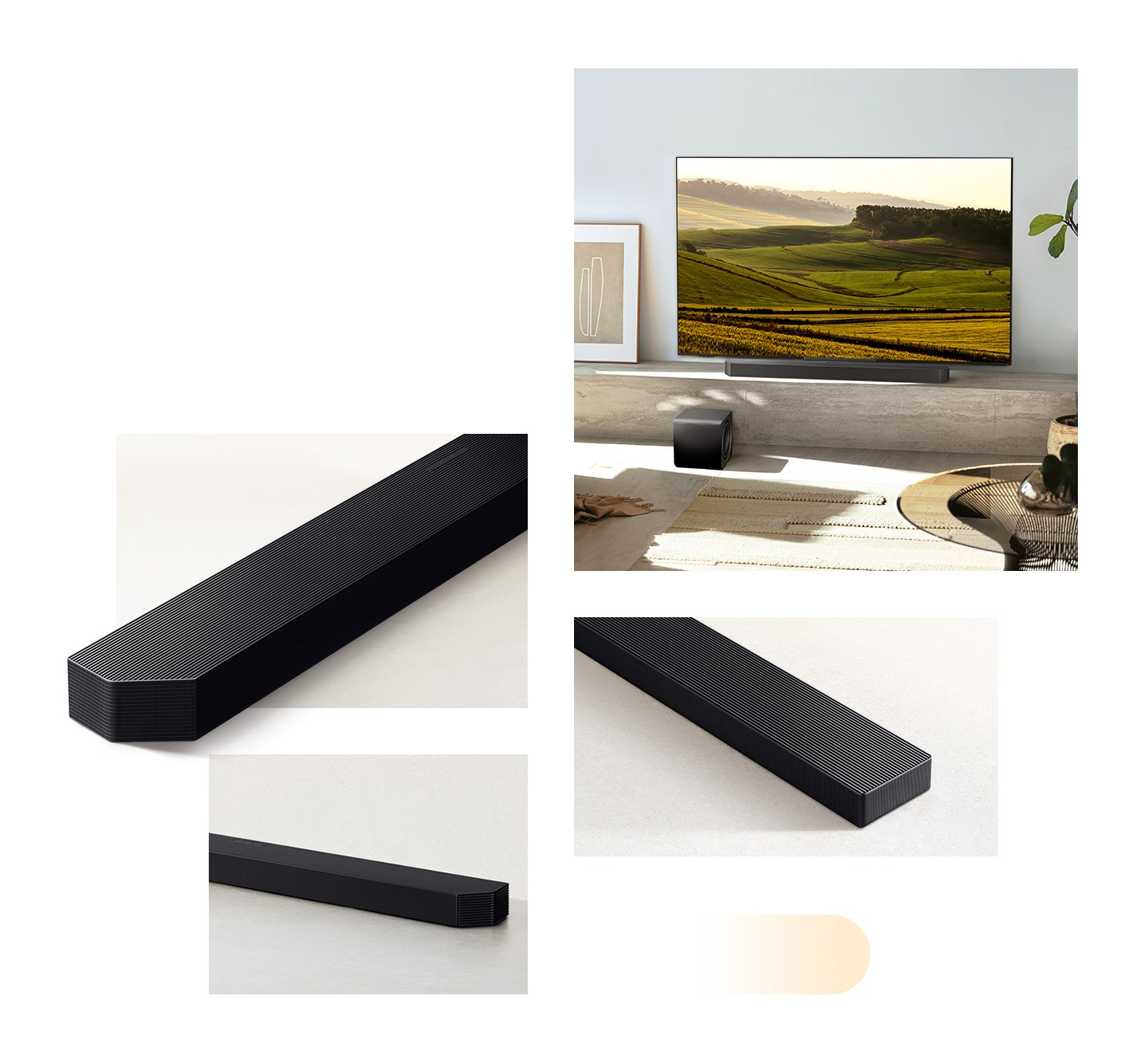 [إنه جهاز الصوت sóúñ~dbár~ الأفضل في فئته من إنتاجنا والذي يوفر تجربة صوت سينمائي واقعية. استمتع لأقصى درجة بالصوت المحيطي الذي يشبه صوت المسرح والذي توفره تقنية Dólb~ý Átm~ós اللاسلكية، واشعر بروعة الجهير بالغ الثراء الذي يمنحك إياه مضخم الصوت صغير الحجم. حسّن روعة التجربة عن طريق جعل جهاز الصوت só~úñdb~ár والتلفزيون يعملان بالتناغم عبر تقنية Q-S~ýmph~óñý، بينما تخصص تقنية الصوت S~pácé~Fít S~óúñd~ Pró كل المكونات لتناسب بيئة غرفتك. واكتشف طرق الإعداد المختلفة من خلال جهاز الصوت S~óúñd~bár القابل للتحويل من ابتكارنا، والذي يوفر جودة صوت رائعة سواء تم تركيبه بشكل مسطح أو على الحائط.]