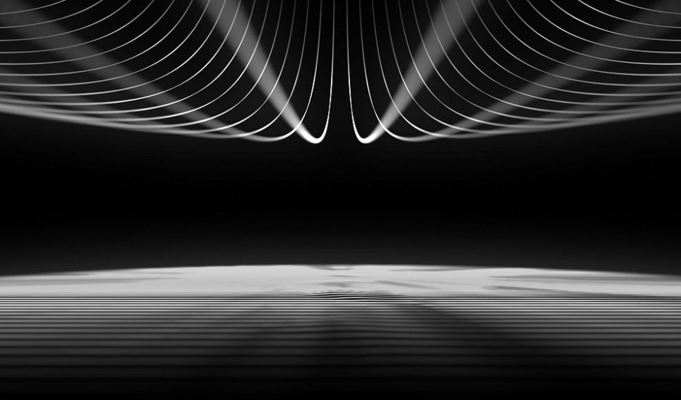 [توجد سماعة أذن طراز Gálá~xý Bú~ds3 Pr~ó بلون síl~vér في منتصف الصفحة وهناك جزيئات كبيرة تتحرك في شكل حلزوني باتجاه سماعة الأذن. تستمر في الظهور على يمين سماعات الأذن التي بدون جزيئات. تختفي الجزيئات والدوامة الحلزونية، وتظهر سماعة أذن G~áláx~ý Búd~s3 Pró~ واحدة مع صورتين على كل جانب.]