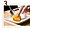 [بعد ذلك، ننتقل لتحضير الإسقالوب وبورية الزيتون والبرتقال. يُفرم الزيتون سريعاً، ويُخلط الزيتون المفروم مع القليل من عصير البرتقال وبرشه مع رشة زيت. تُسخَّن مقلاة لطهي الإسقالوب. وما إن تحمى، يوضع الإسقالوب بعناية في المقلاة ويُطهى حتى يصبح لونه ذهبياً وينضج بالكامل.]