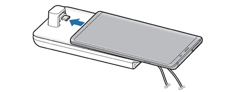 [يُرجى الملاحظة: تأكد من أنه تم إدخال هاتفك الذكي في الموصِّل أفقيًا. وإن لم يتم ذلك، قد تتلف لوحة DéX وهاتفك الذكي.]