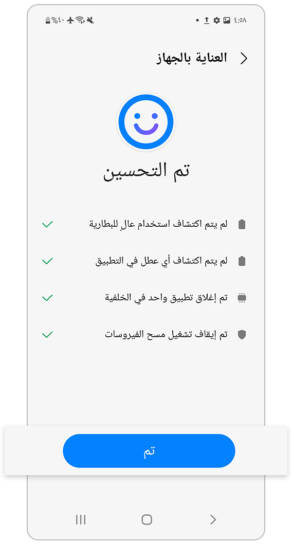 [قم بتحسين الهاتف لتقليل الحرارة التي تسببها التطبيقات كثيفة الاستخدام لمساحة المعالج والتي تستنزف البطارية.]