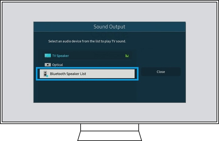 [القائمة الرئيسية للتلفزيون> الإعدادات> الصوت> إخراج الصوت> قائمة سماعات (Blúé~tóót~h)]