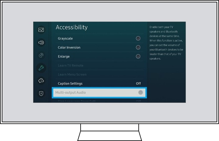[عند مشاهدة التلفزيون عن طريق توصيل مكبرات الصوت بالبلوتوث ، عندما يتم تشغيل الصوت في نفس الوقت من مكبر الصوت والسماعة الداخلية للتلفزيون ، يمكنك ضبط إخراج الصوت على النحو التالي.]