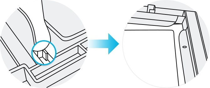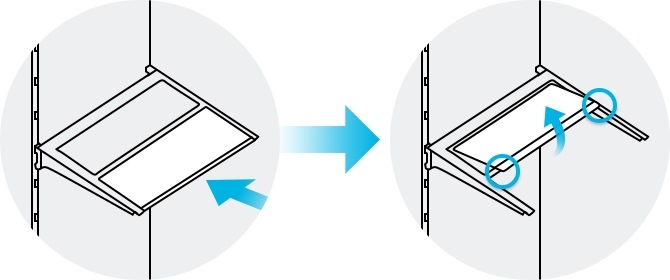 [အဆင့် ၁။ ရေခဲသေတ္တာမှစင်ကိုဖယ်ရှားပါ၊ ၎င်းကိုဖွင့်ပြီးဘယ်ဘက်နှင့်ညာဘက်ထောင့်များရှိထိန်းသိမ်းထားသည့်ကလစ်များကိုတွေ့ပါ။